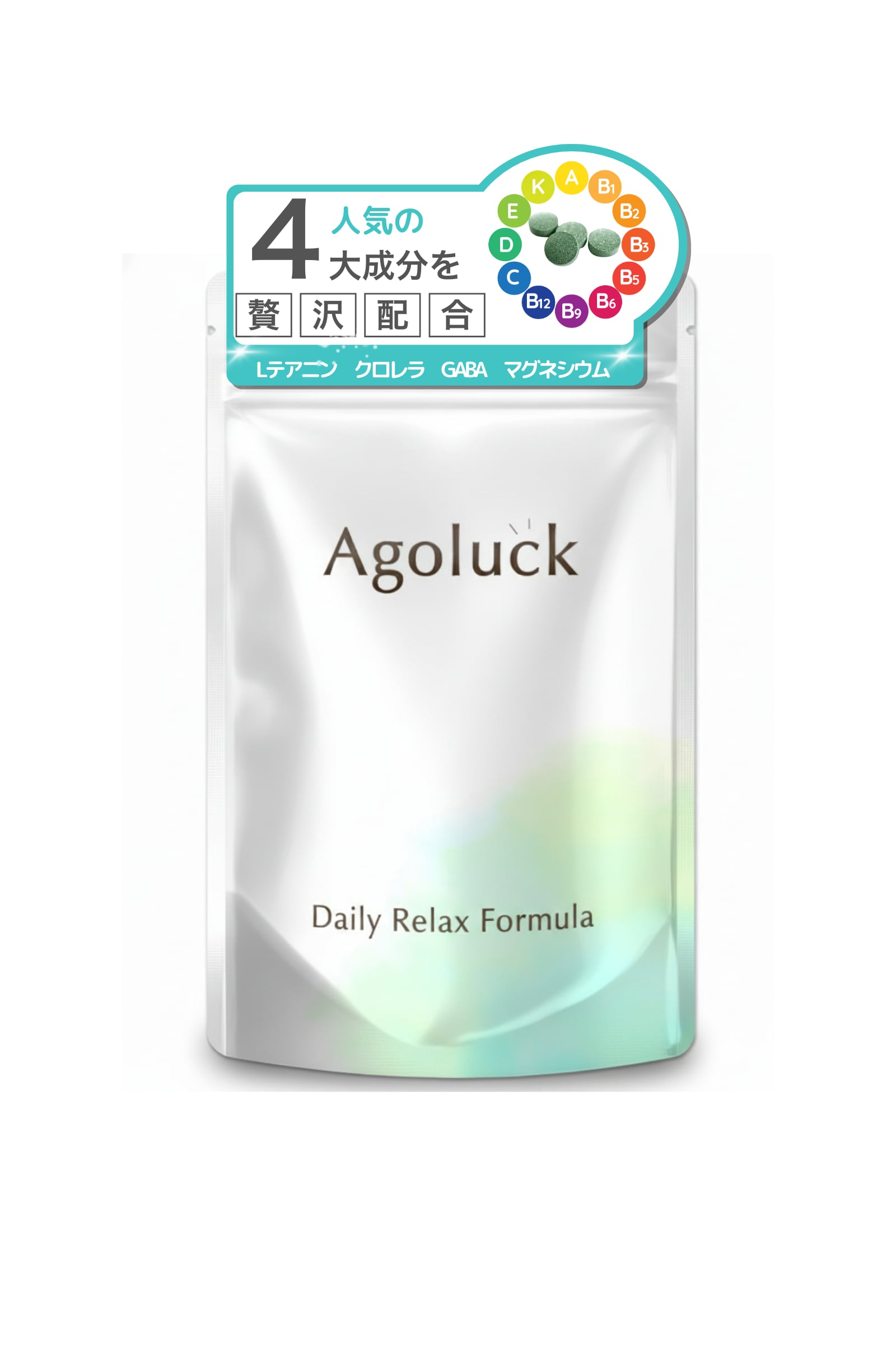 Ago-luckは、食事だけでは摂りきれないミネラル成分やテアニン、GABA、ビタミンBを手軽に補給できるサプリメントです。1粒にマグネシウムをはじめ、鉄、カリウムなどをバランスよく配合しています。 Ago-luckは、分析試験(誘導結合プラズマ発光分光分析法)により確認された、確かなミネラル含有量が特長です。